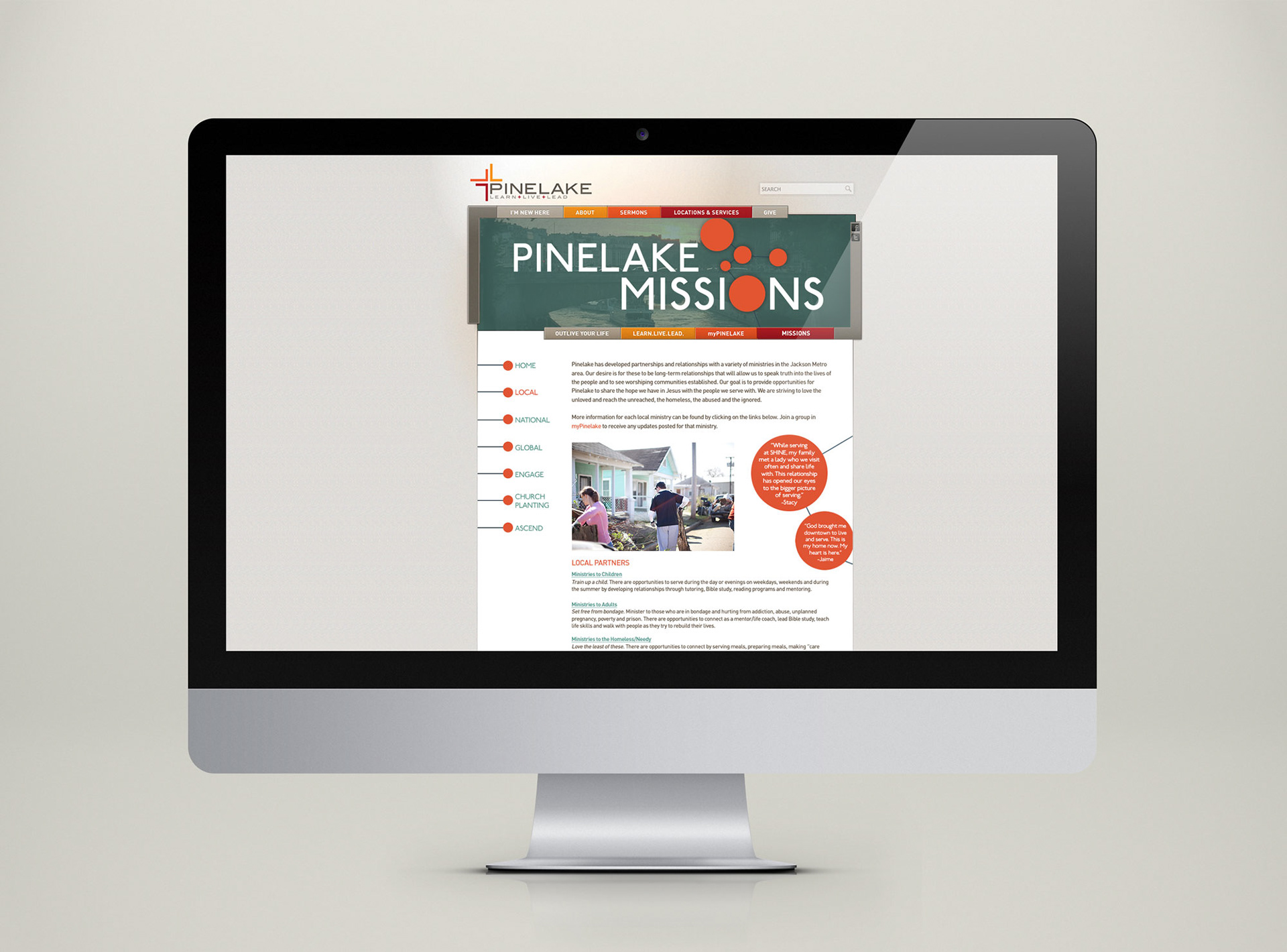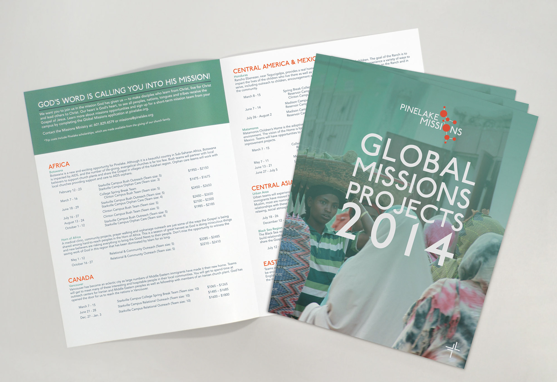 Logo, brochures, and website design for the missions ministry at Pinelake Church. The logo and accompanying collateral reflect Pinelake Missions’ vision of “expanding the Kingdom and multiplying church leaders across the globe.”